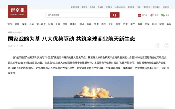 新华网 光明网 科技日报重磅解读:2026北京国际商业航天展,何以定义未来?