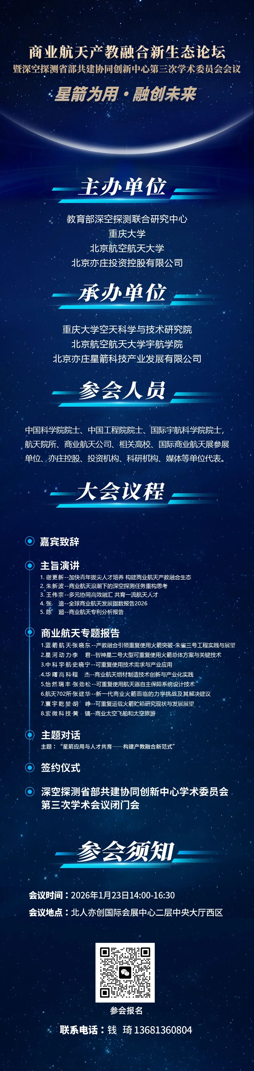 同期活动|商业航天产教融合新生态论坛1月23日举行