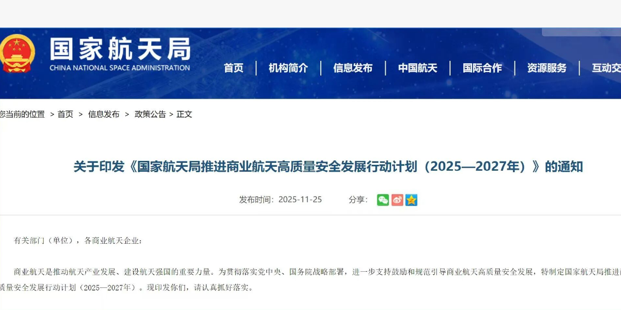 星际速递 | 国家航天局重磅行动计划发布!“十五五”首个国际商业航天盛会1月京启